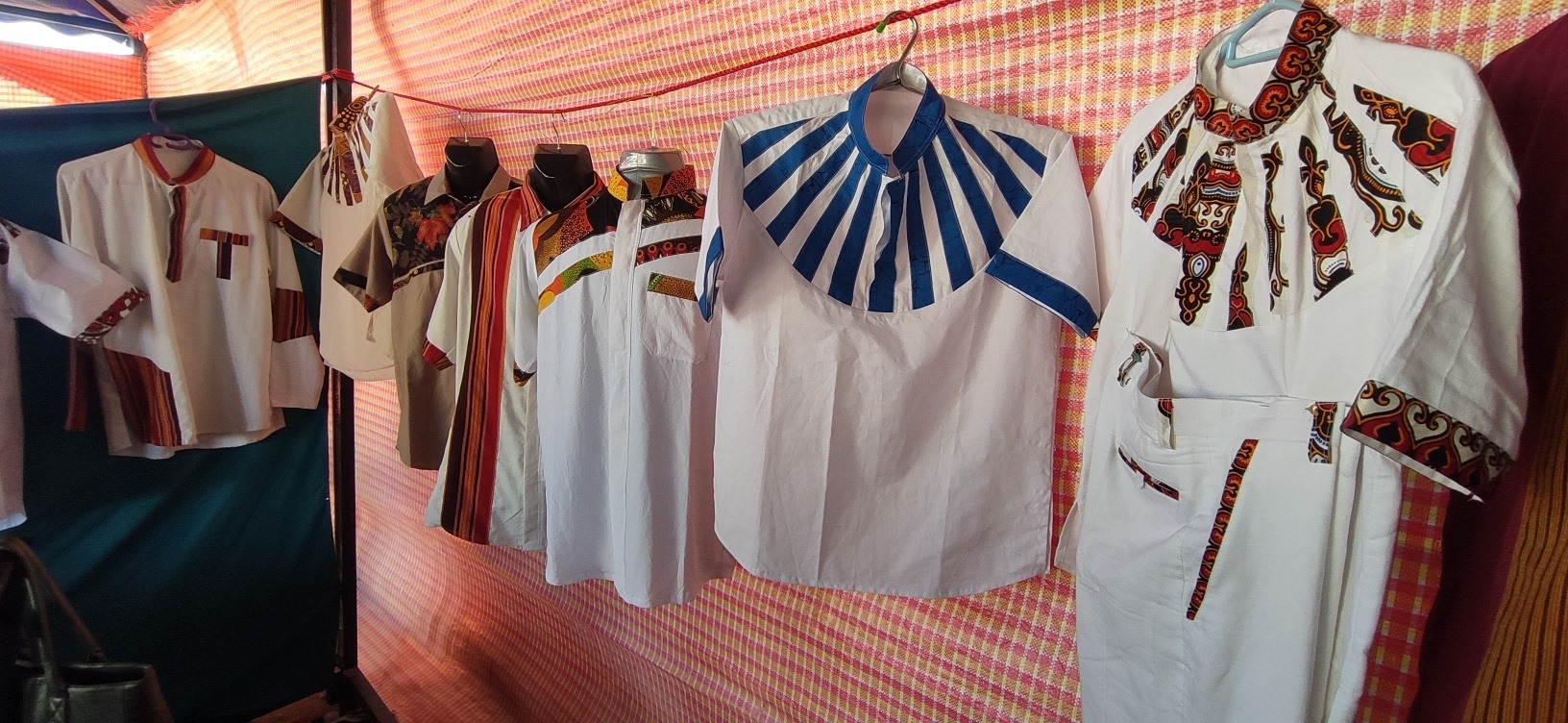 Lambas (pagnes traditionnels) et vêtements aux motifs colorés et symboliques.